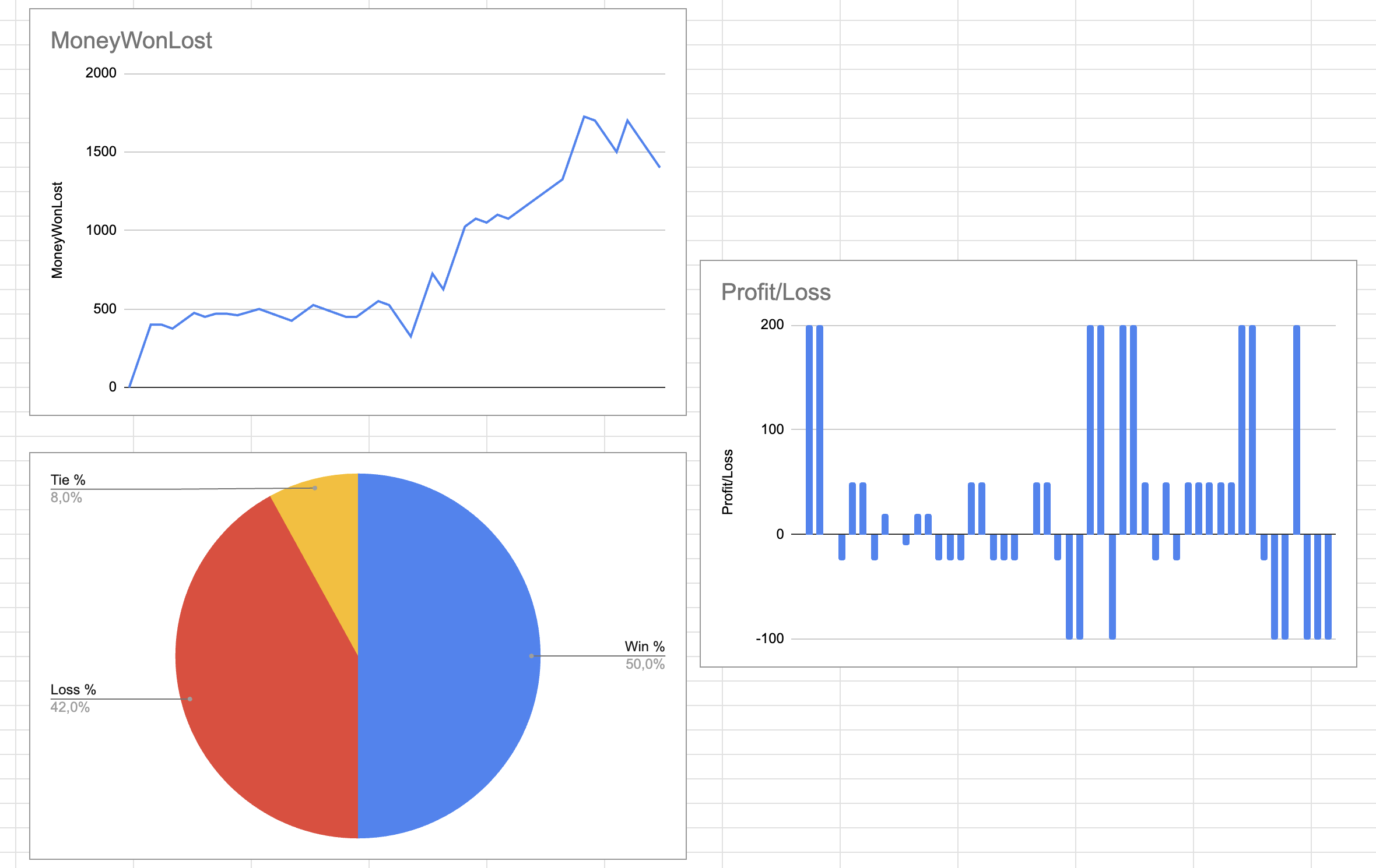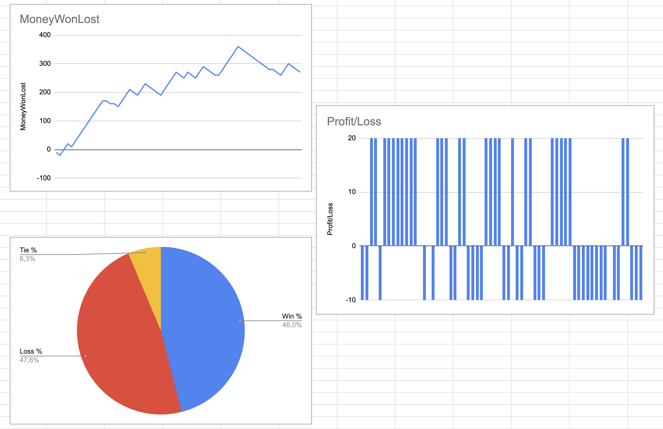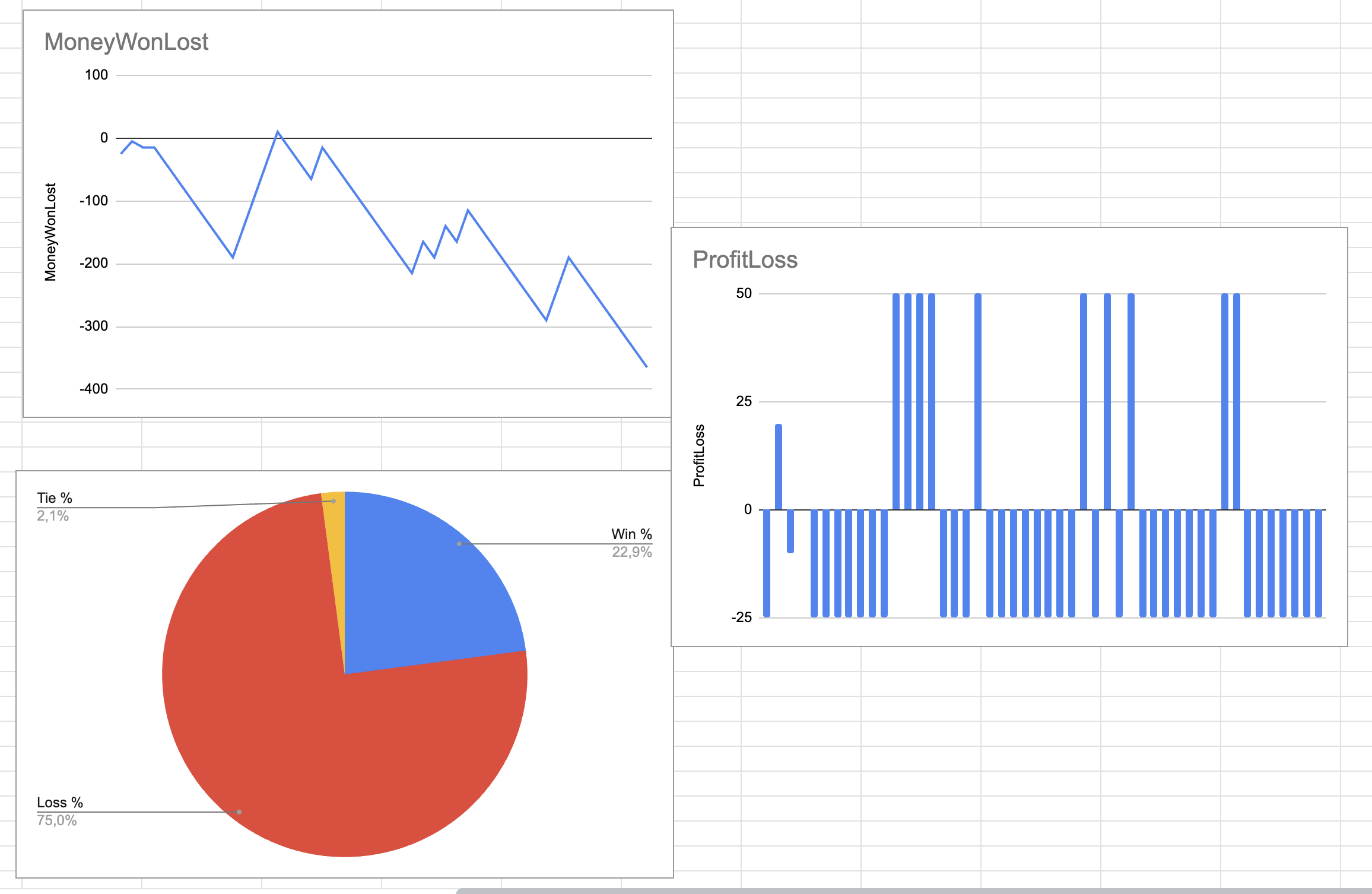 To test the agents implementation will be measured the amount of money won and risked and compared this data in a grafical representation.