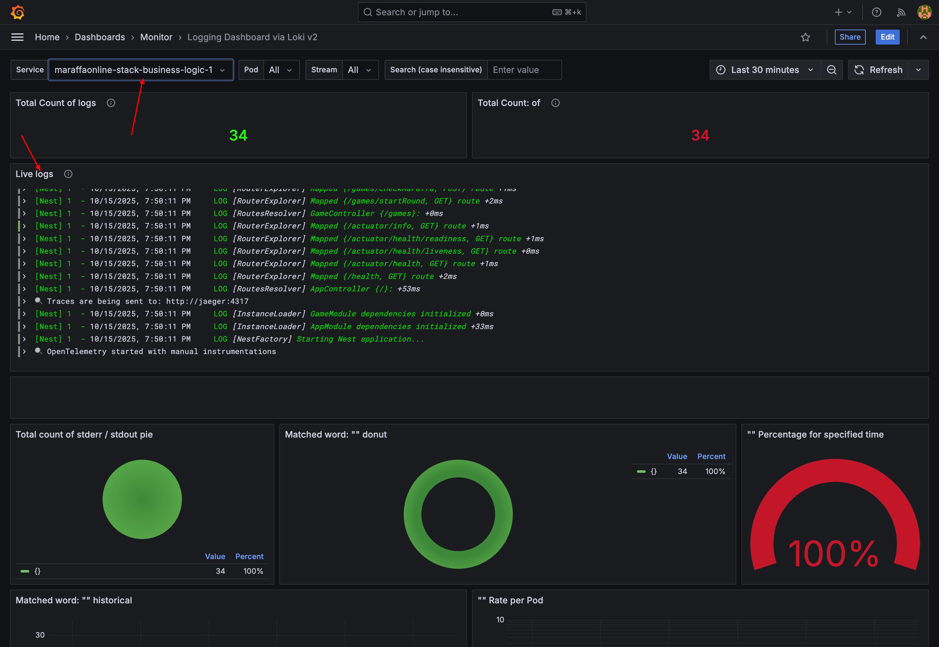 In ogni servizio creato ad-hoc per il progetto sono state inserite le API per il controllo di health, forniscono un test di liveness del sistema tramite uno status code 200 e inoltre sono state aggiunte metriche di ogni servizio che potrebbero risultare utili in uno scenario di deploy in cui è importante conoscere lo spazio su disco utlizzato da ogni servizio e che percentuale occupa. All’interno dello stack, su ogni container, vengono chiamate queste API periodicamente per poter assicurare che non ci siano down di servizi.